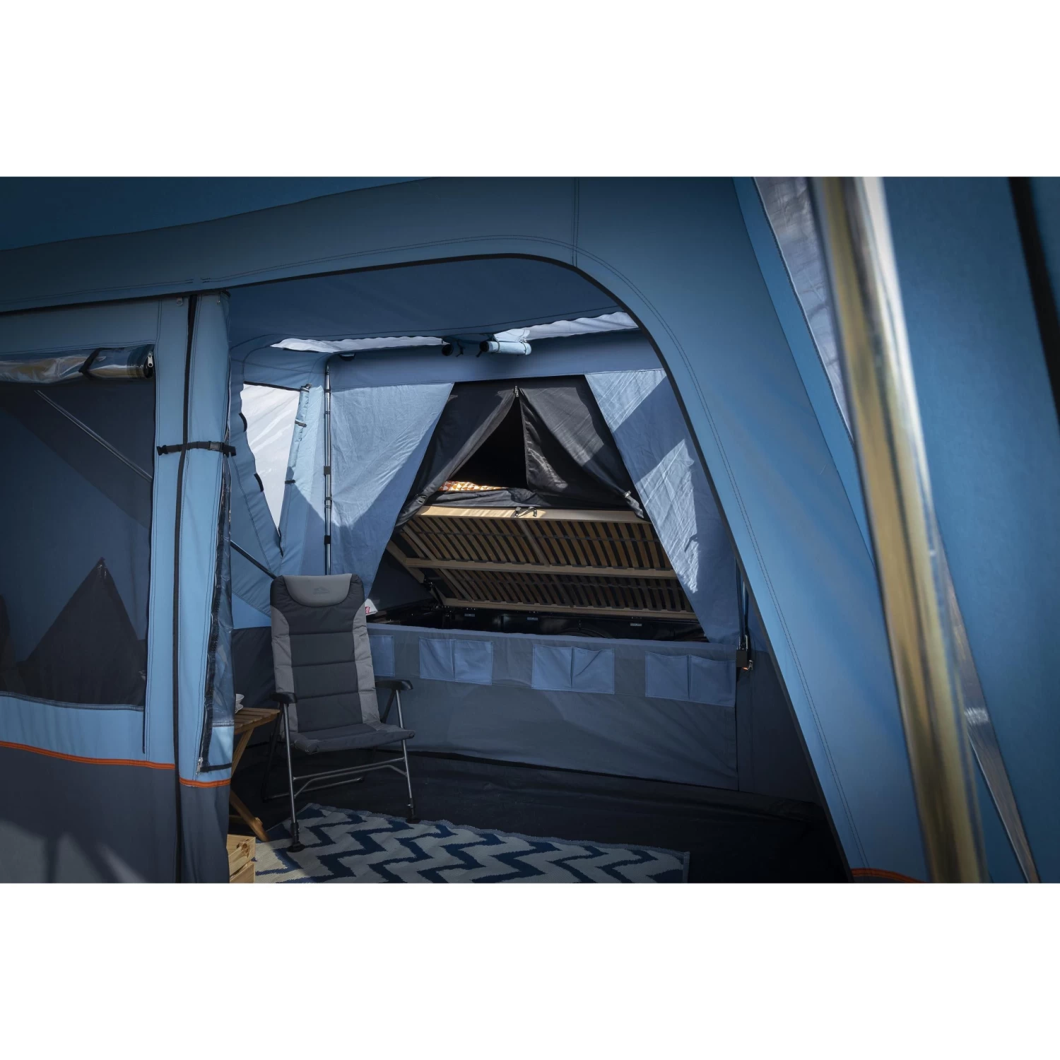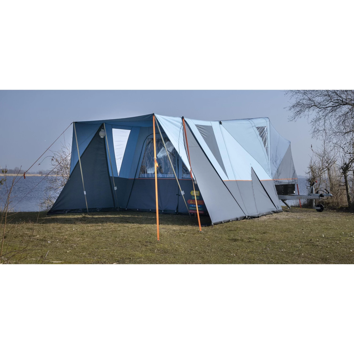 De Alpenkreuzer Waterfront vouwwagen is een ruime vouwwagen met een capaciteit van 2 tot 4 personen. Deze Alpenkreuzer vouwwagen heeft een ruim bed met lattenbodem van 210 x 150 cm en een inbegrepen 8 cm dik schuimmatras, dit staat garant voor een goede nachtrust. De hoge kwaliteit van de vouwwagen is onder andere terug te zien in het TenCate 100% katoenen tentdoek, deze is waterafstotend, vocht afvoerend en ademend voor een comfortabele kampeerervaring. De voortent van 220 x 290 cm geeft meer dan genoeg leefruimte. De voortent is voorzien van een vaste luifel en kan ook nog uitgebreid worden met een optionele zonneluifel.