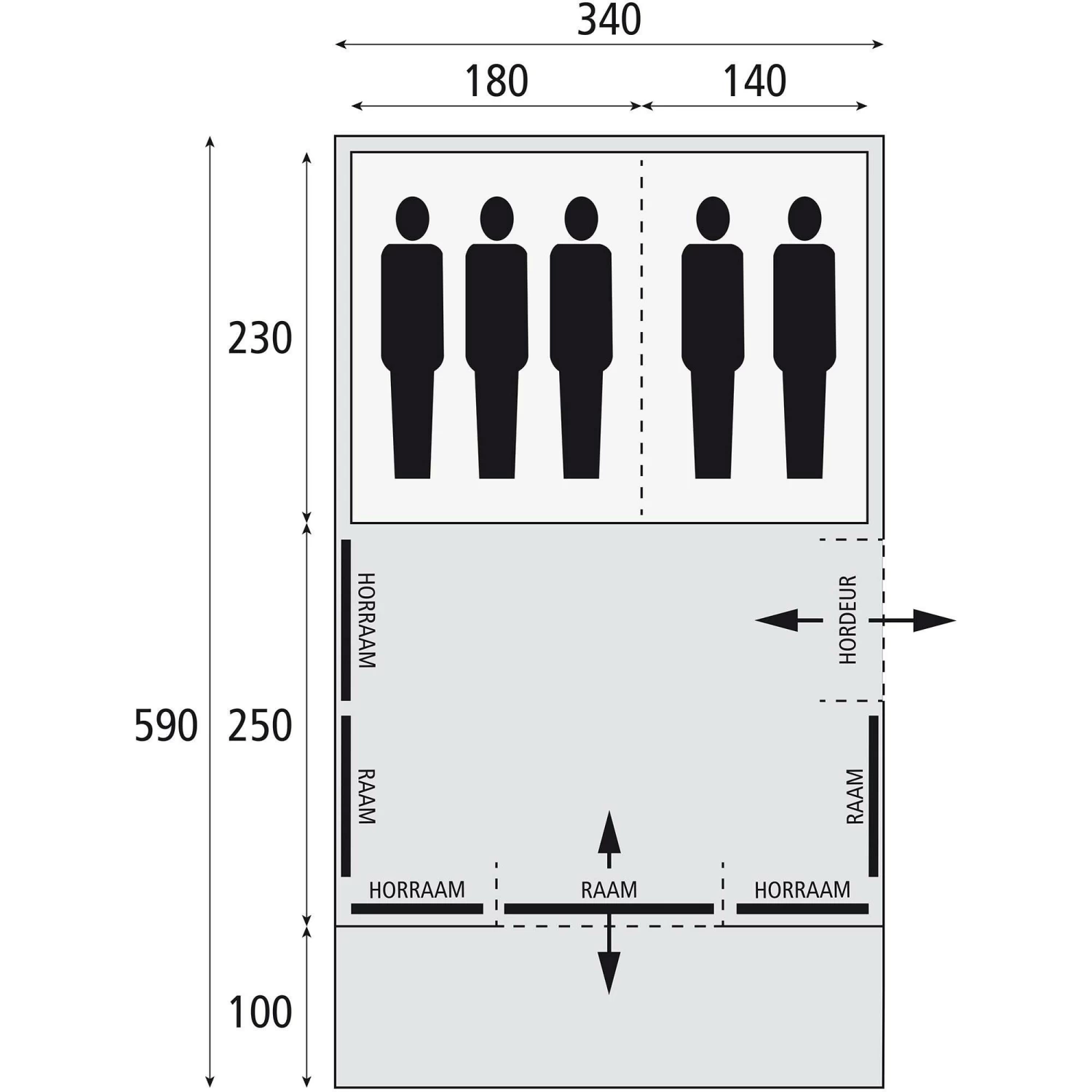 De Bardani Spitfire 340 XL RSTC tunneltent is een royale familietent met stahoogte en een zij-ingang met een hordeur. De tent is geschikt voor maximaal vijf personen en voorzien van twee slaapcabines.