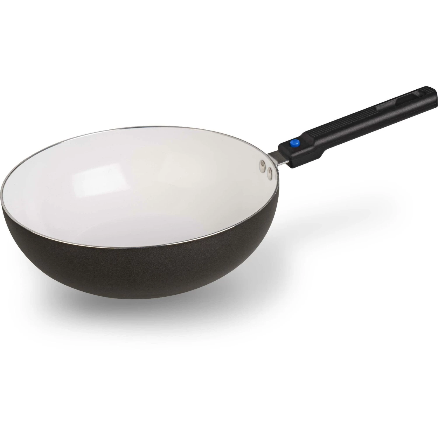 De Bardani Sufuria wokpan 16 cm met afneembare steel is ideaal voor het bereiden van kleine maaltijden en sauzen. Deze Bardani wokpan is gemaakt van aluminium, waardoor deze licht van gewicht is. Door de handige afneembare steel en het kleine formaat is de pan ook compact op te bergen. De binnenzijde van deze wokpan is voorzien van een krasbestendige anti-aanbaklaag. Deze wokpan is te gebruiken op een gasfornuis, maar tevens op een elektrische en keramische kookplaat.