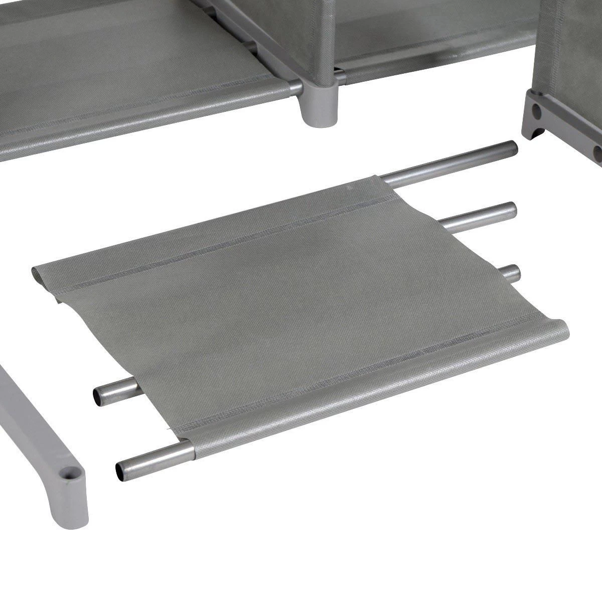 De Bo-Camp Multi-use vakkenkast is eenvoudig in elkaar te zetten. De vorm van deze Bo-Camp vakkenkast kan zelf worden bepaald aangezien de vakken op verschillende plekken te bevestigen zijn. Hierdoor kan deze naar ieders wens worden aangepast. Er is gebruik gemaakt van staal in het frame en polyester in het doek. De kast is inclusief 3 opberglades.