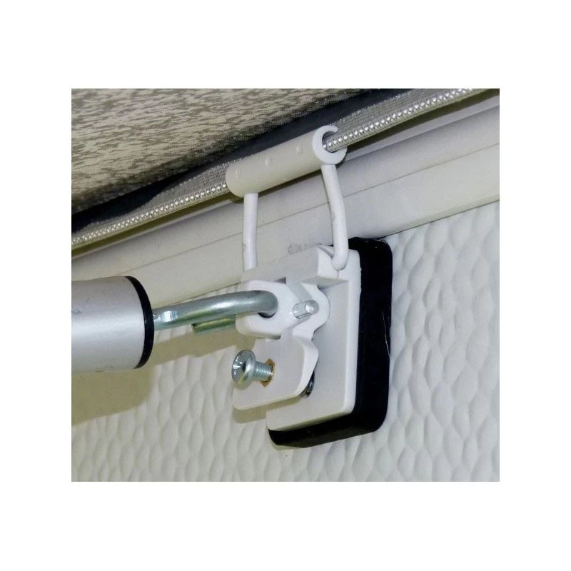 De SHS adapterset is speciaal ontwikkeld voor de merken Knaus, Wilk en Tabbert caravans. Deze caravans hebben een luxe, wit gelakte tentlijst welke schuin op de zij- en dakplaat zit. Hierdoor is het niet mogelijk om gebruik te maken van de SHS blokjes. De adapters uit deze set kunnen aan de SHS blokjes van het frame van de voortent gespannen worden. Dit maakt het toch mogelijk om de voortent netjes en strak aan de zijwand van de caravan te spannen. Deze set bestaat uit 5 stuks en wordt geleverd inclusief montagehandleiding.