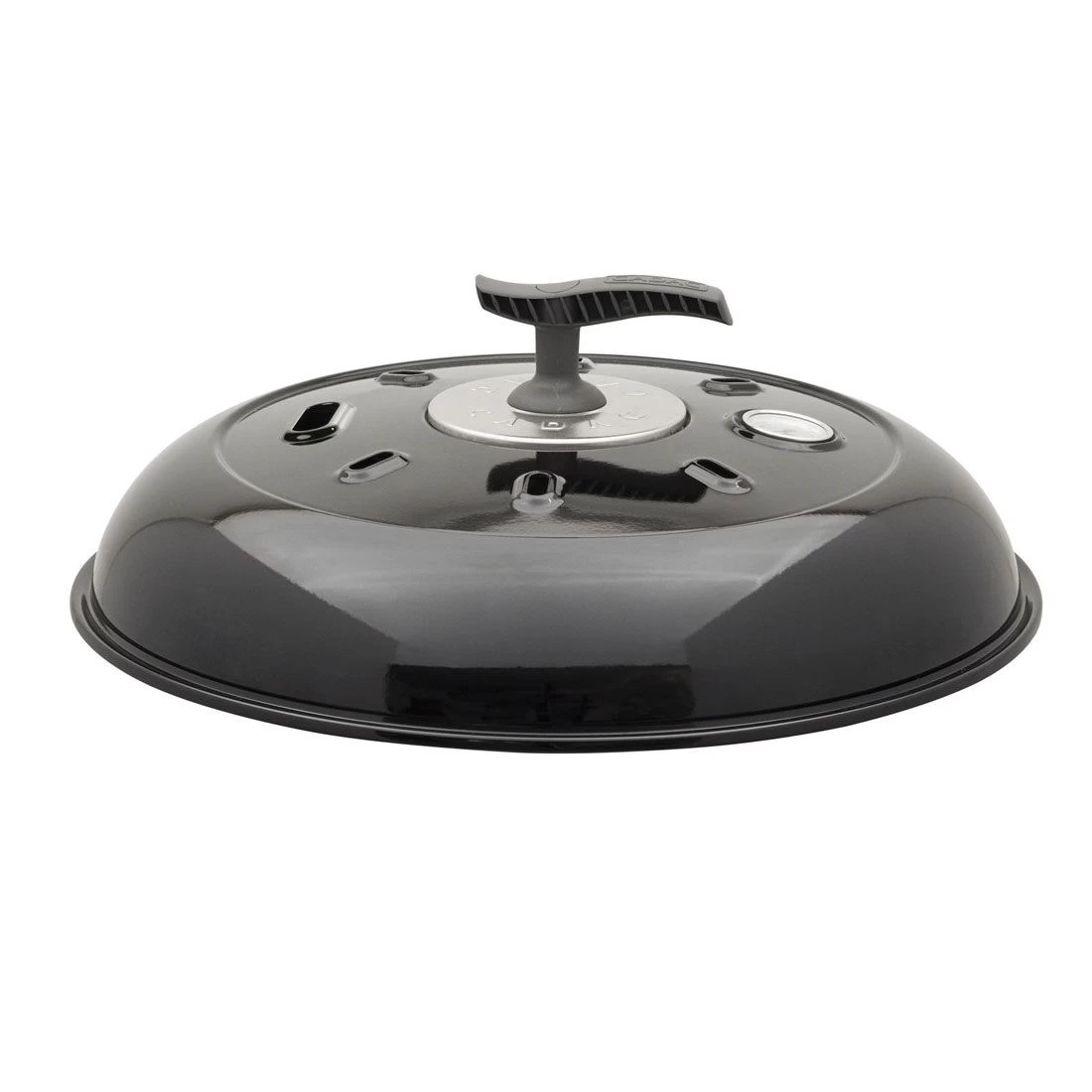 Deze deksel is speciaal ontworpen voor de Cadac Carri Chef 50. De deksel is voorzien van een thermometer, een staycool handvat en door de gaatjes in het deksel zitten ontstaat er een constante temperatuur.