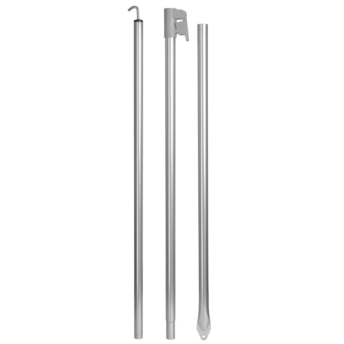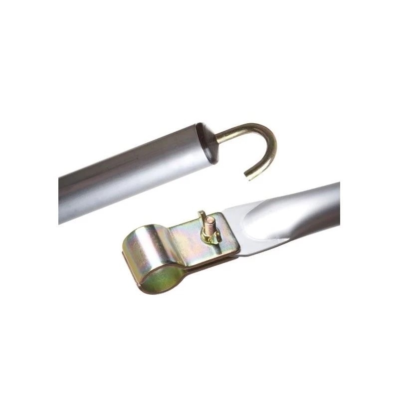 Aluminium extra daksteun van Campking met een diameter van 28 mm. De lengte is verstelbaar tussen 170 en 260 cm en vast te zetten met een metalen stelring. Extra dakliggers worden gebruikt om de frameconstructie te verstevigen en het dak van de voortent op een optimale spanning te brengen. Vooral bij grotere maten is het verstandig om extra daksteunen aan te brengen om zo waterzakken te voorkomen. Ook bij seizoenstenten is het plaatsen van extra stokken in het dak aan te raden. De hele constructie van het frame wordt steviger en beter bestand tegen storm en wind door het bevestigen van extra dakliggers. De extra dakligger wordt met de haak aan het framebevestigingsoog gehangen en aan de voorzijde van de voortent vastgeklemd aan de nokstok.