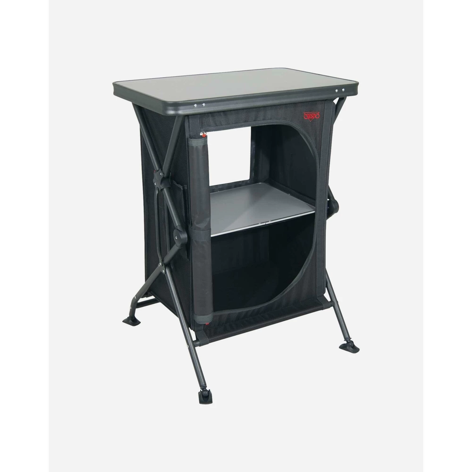 De Crespo AP-106 kookkast is zeer stevig en voorzien van twee handige legplanken. De kookkast van Crespo is zeer plat opvouwbaar en daardoor gemakkelijk mee te nemen en op te bergen. Het aluminium frame heeft verstelbare poten met stabilisatoren. Hierdoor is de kookkast op iedere ondergrond stabiel te plaatsen. Het melamime oplegblad is zowel watervast als hittebestendig,