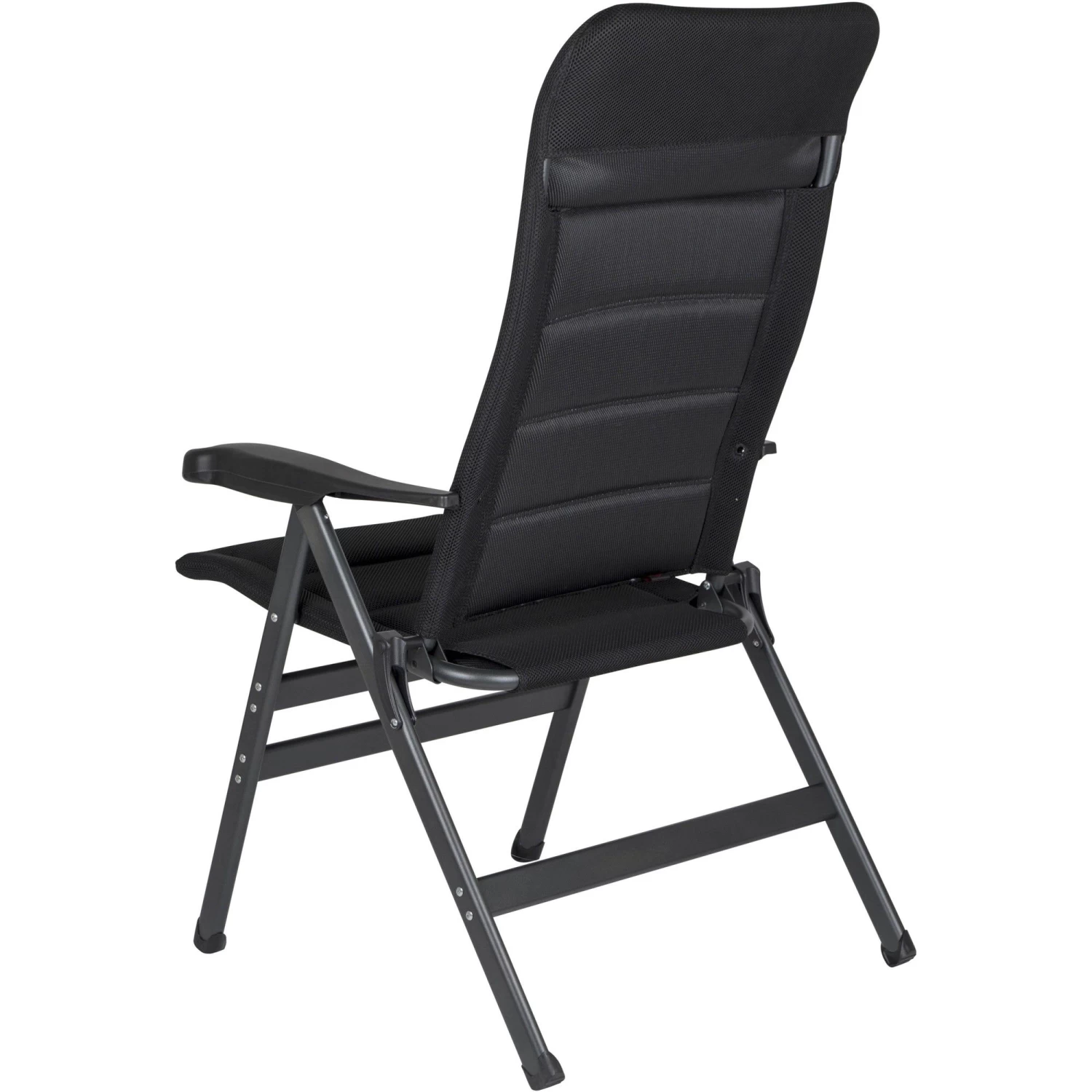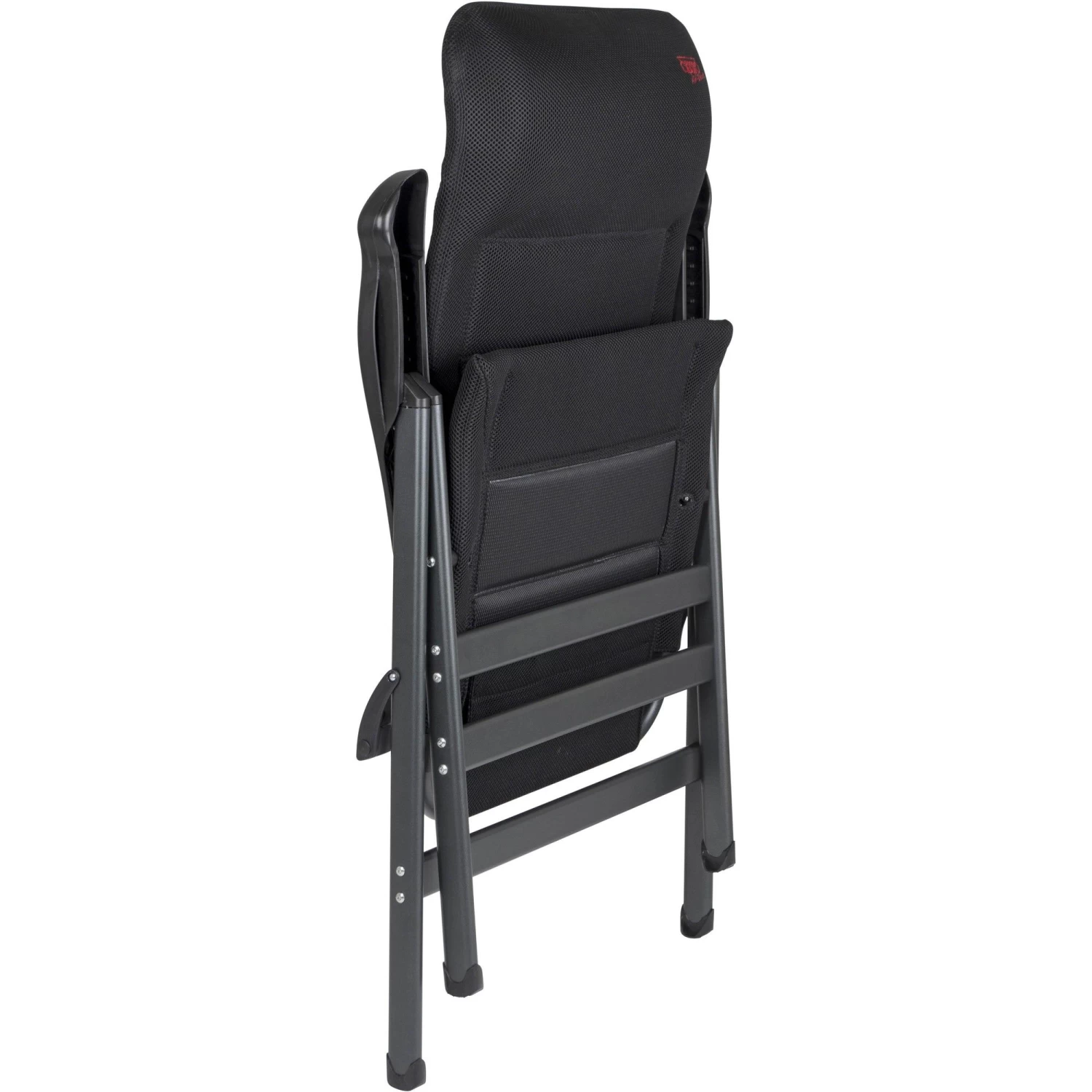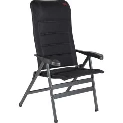 De Crespo AP-238 XL Air-Deluxe campingstoel zwart is een zeer ruime en luxe standenstoel. De Crespo campingstoel is geschikt voor grotere mensen met een draaggewicht tot 200 kilo. De rugleuning van de stoel is te verstellen in zeven verschillende standen voor optimaal comfort. De gepolsterde 3D stof is samen met de comfortabele vulling extra doorlatend. De stoel droogt dan ook aanzienlijk sneller dan stoelen met een traditionele schuimvulling. De zitting, rugleuning en armleggers van de kampeerstoel zijn ergonomisch gevormd. Het geanodiseerde H-frame zorgt voor extra stevigheid en stabiliteit. De stoel is zeer gemakkelijk mee te nemen door de compactheid wanneer deze is ingeklapt.