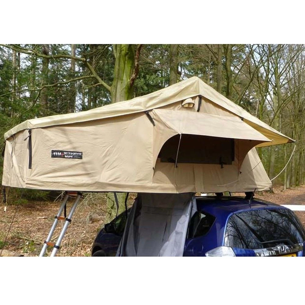 De 140L Autodaktent is een grote, veelzijdige, katoenen daktent waarmee u op elke gewenste plek een ideaal onderkomen creëert. De daktent weegt 50 kg, rust op de dakdragers en is zeer eenvoudig uit te klappen.