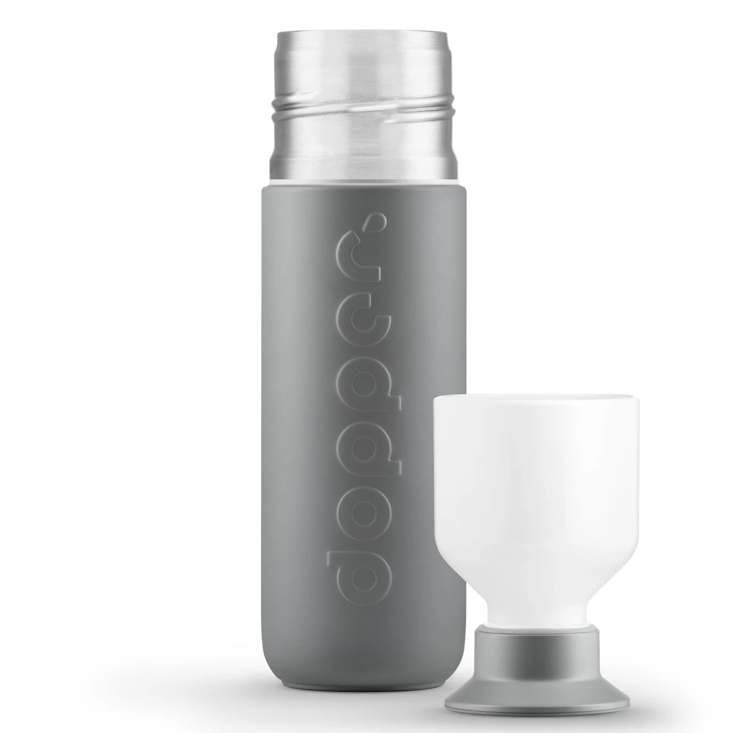 In de Dopper Insulated drinkfles 350 ml glacier grey blijft koud water koud en warm water warm! Deze dubbelwandige drinkfles houdt koud water tot 24 uur koud en warm water blijft tot 9 uur warm. De Dopper kan in de vaatwasser worden schoongemaakt, tot een temperatuur van 65° Celsius. Gebruik de Dopper niet voor bijtende en/ of melkachtige dranken. Een sportdop is niet geschikt voor gebruik met deze drinkfles.