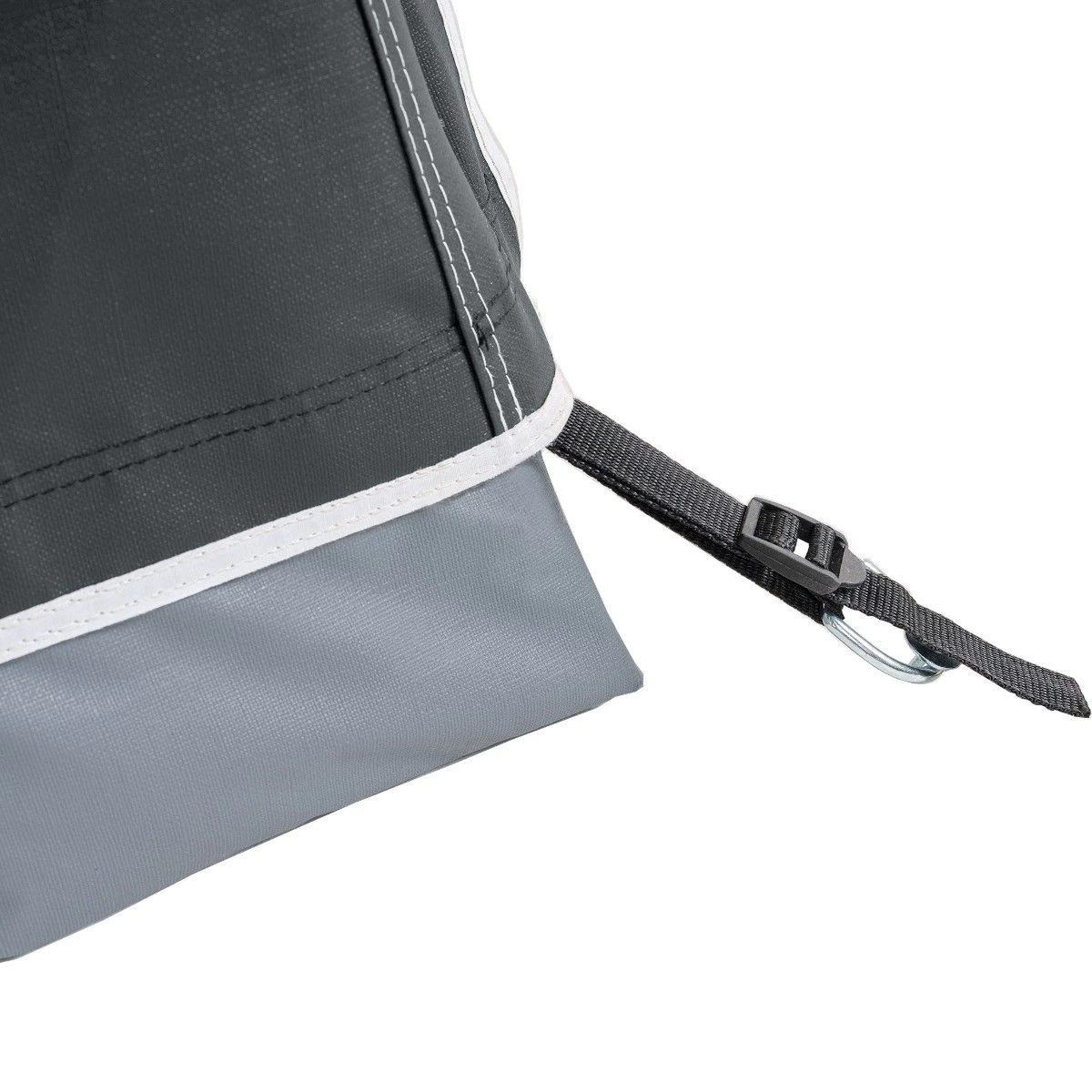 De Smaragd 270 is ideaal voor verschillende weersomstandigheden. Dankzij de oprolbare wanden kunt u lekker voor de caravan zitten en genieten van het mooie weer. Daarnaast heeft de tent hoge ramen, waardoor u het gevoel heeft dat u buiten zit. Verder komt er geen water of kou binnen de tent door de tochtstrook en afgedekte ritsen.