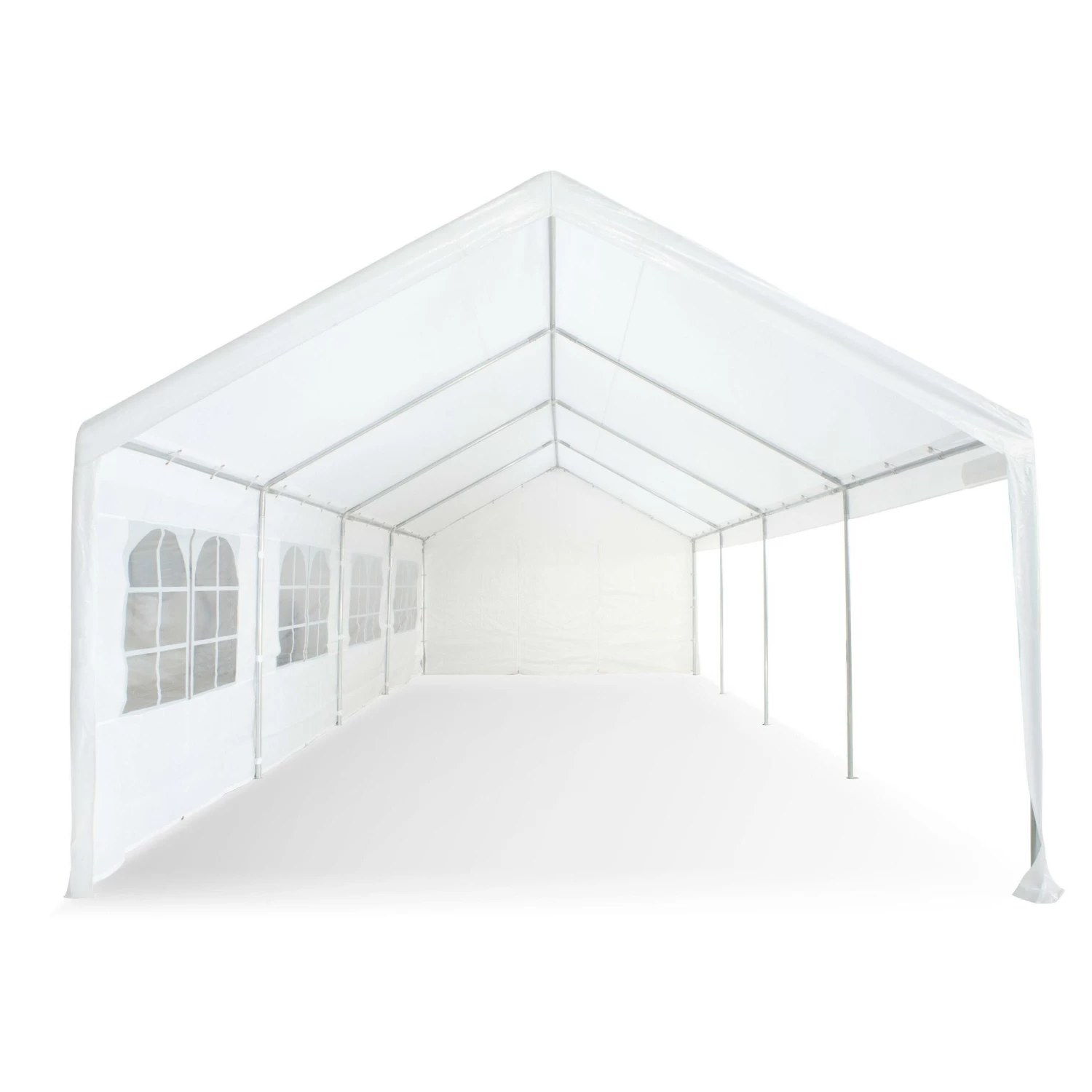 Deze DWS Fiësta partytent is een zeer ruime partyten van 4 x 8 meter. Standaard worden voor- en achterwand, zijwanden, haringen en scheerlijnen meegeleverd. Beide kopse kanten zijn voorzien van een deuropening. Het dak en de wanden zijn gemaakt van 180 grams PE zeil. Dit materiaal is waterafstotend en is eenvoudig te reinigen. De stokken zijn gemaakt van 38 mm gegalvaniseerd staal. Deze partytent is geschikt voor incidenteel gebruik zoals met een feestje of tijdens uw vakantie. De tent is dan dus ook niet geschikt om langdurig buiten te laten staan.