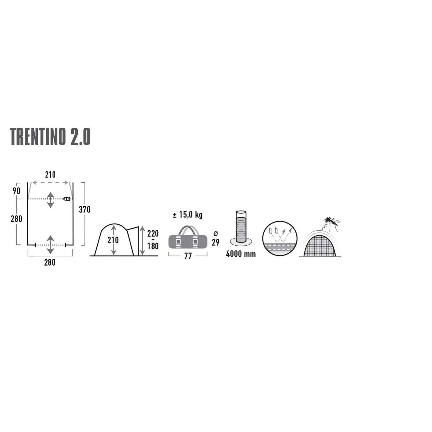 De Trentino 2.0 bustent van High Peak is een vrijstaande “Drive Away” tent geschikt voor al uw kampeeravonturen. Dankzij de constructie van het dak en de zijwanden ervaart u een optimaal ruimtegevoel.