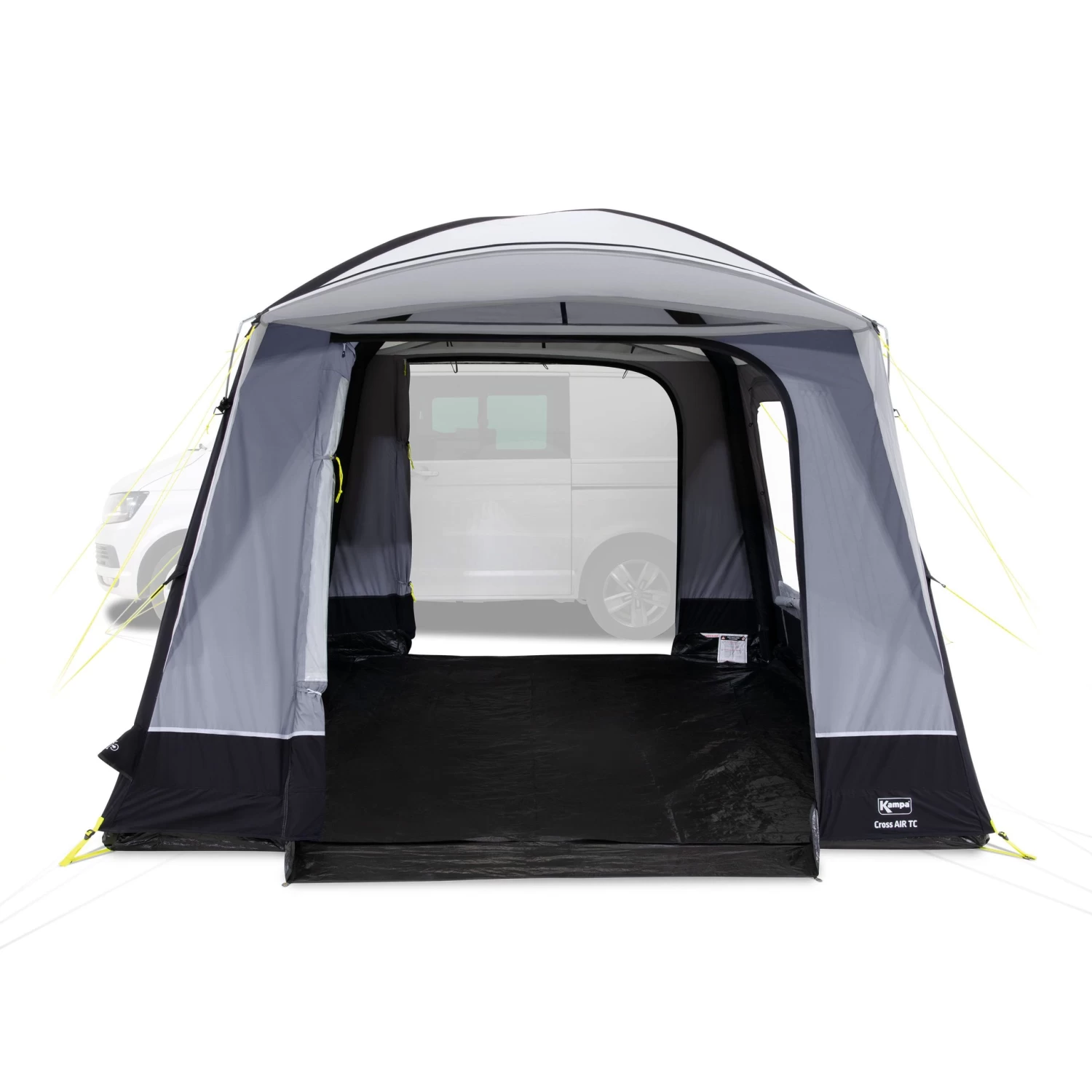 De Kampa Cross Air TC bustent biedt uitkomst als u op vakantie gaat met de bus of camper. Dankzij de duurzame opblaasbare tubes, die individueel opgeblazen kunnen worden, is de tent eenvoudig op te zetten en af te breken. Het slim ontworpen voorpaneel bevat een D-deur die half of volledig naar achteren gerold kan worden. De entree van deze bustent is voorzien van een luifel, deze zorgt voor extra schaduw en voorkomt dat het naar binnen kan regenen zodra u de deur openritst. Verder is de Kampa Cross Air TC bustent uitgerust met een inhaakbaar grondzeil, ramen met rolgordijnen en gaaspanelen.