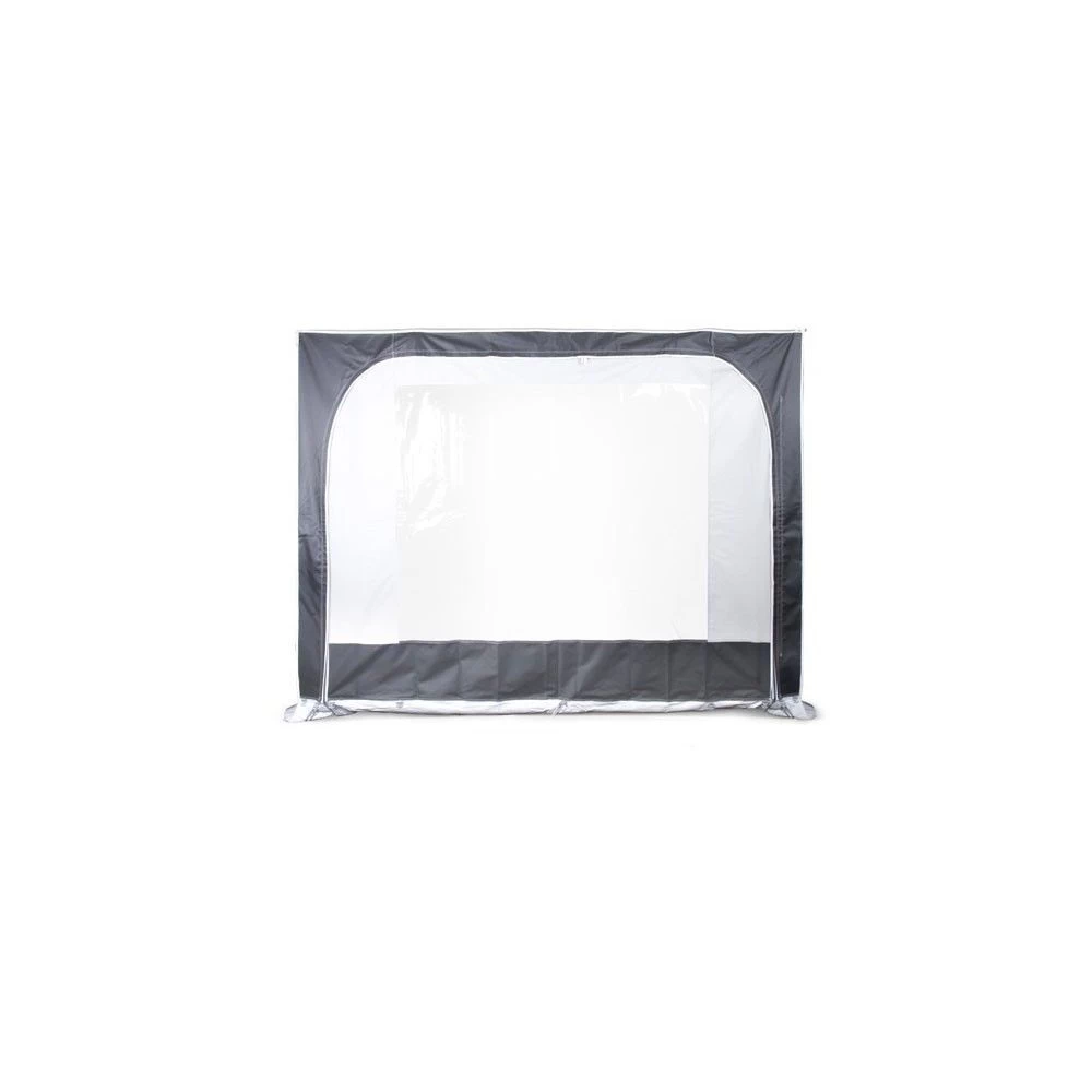 De Terrazzo zijwandenset bestaat uit 2 volledig uitritsbare zijwanden waarvan het raamgedeelte ook nog apart kan worden uitgeritst. In combinatie met een optioneel verkrijgbare verandastang kan er zo eenvoudig een veranda gecreëerd worden. De Terrazzo zijwanden zijn uitsluitend geschikt voor de De Wit Uniek en de Marvella Palermo voortentluifels. De buistunnels zijn voorzien van een rits.