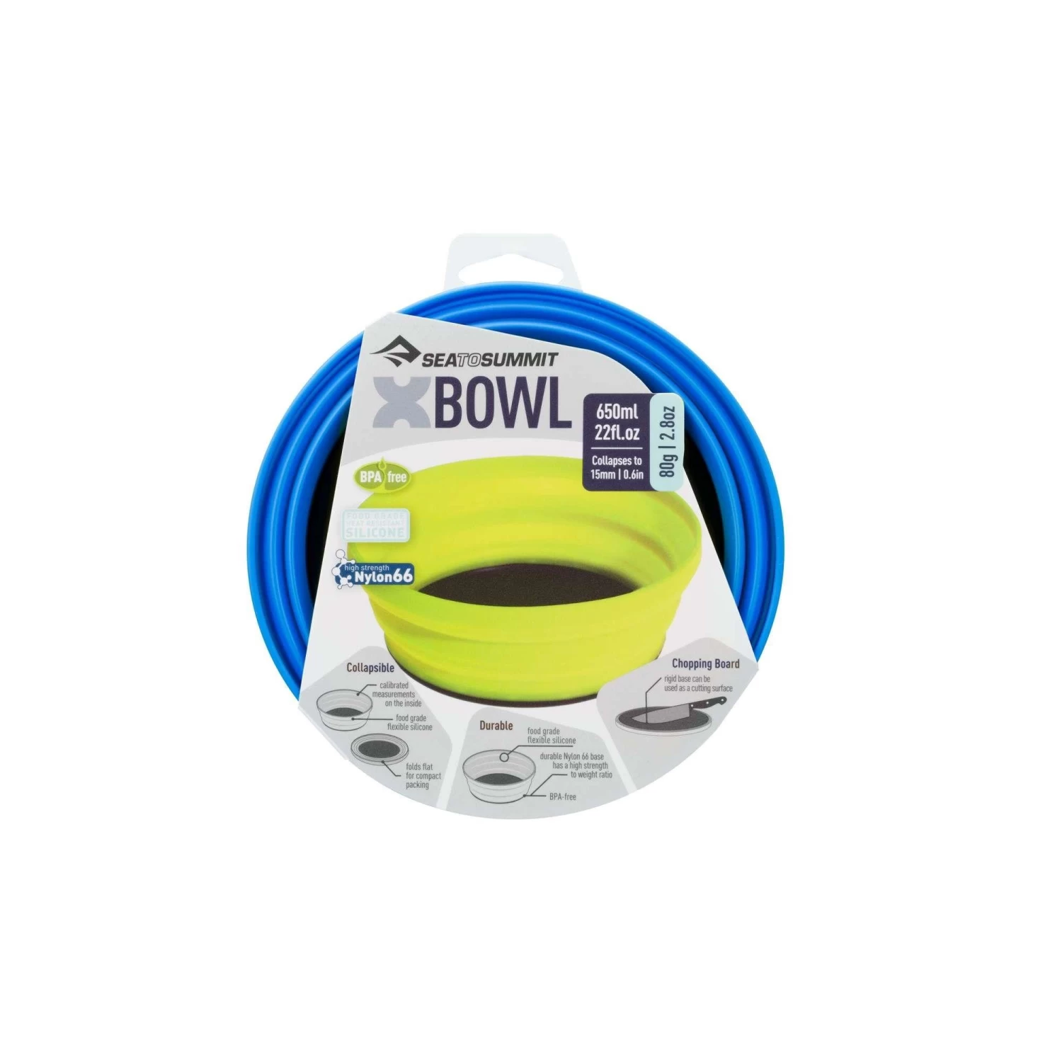 De Sea to Summit X-bowl opvouwbare kom blue heeft flexibele siliconen zijwanden en een nylon bodem. De Sea to Summit opvouwbare kom is compact opvouwbaar en kan gebruikt worden voor verschillende doeleinden. Zo is de kom te gebruiken als maatbeker én is de bodem te gebruiken als snijplank. De kom is opvouwbaar van 5,5 cm tot slechts 1,5 cm.