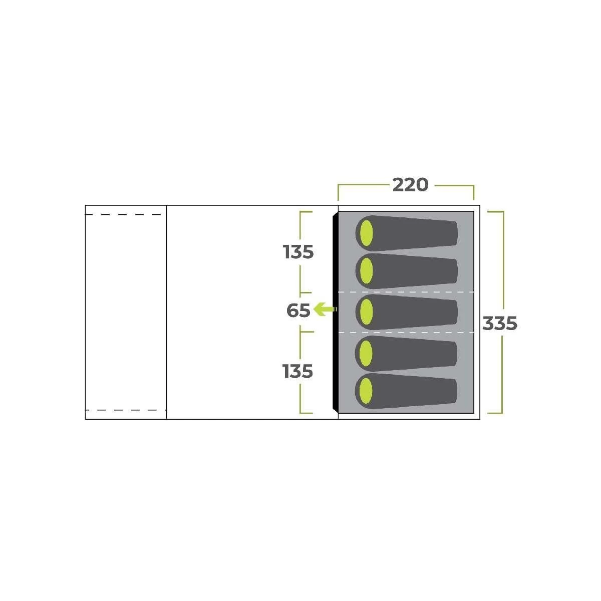De Evo TL is gemaakt voor langere kampeertrips met het gezin. Het nieuwe Sero-Link AirFrame-systeem van Zempire zorgt voor de sterkte van een opblaasbare tent, maar zonder in te leveren op het volume en het gewicht. Zowel de voordeur als de gaasdeur kunnen tegelijkertijd worden bevestigd, waardoor de tent kan worden ingedeeld zoals u het wilt. De gaasdeur kan worden vast geritst en op zijn plaats worden gelaten, terwijl de hoofddeur vervolgens kan worden omgevormd tot een luifel met de kingpalen die in het pakket zitten. Deze gaasdeur is optioneel verkrijgbaar.
