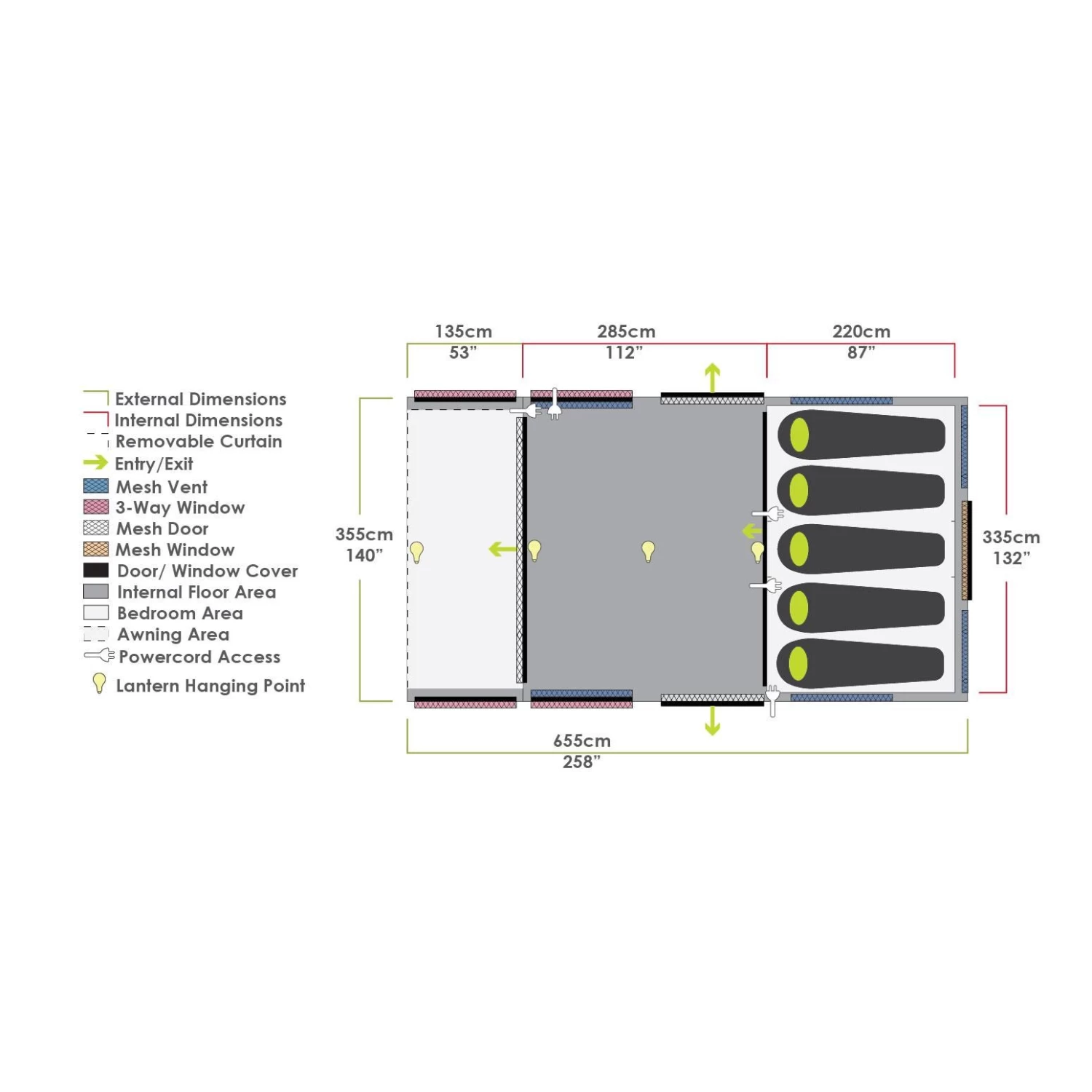 De Zempire Camping Evo TL V 2 opblaasbare tunneltent is royaal uitgevoerd en voorzien van veel (permanente) ventilatiemogelijkheden. De grote ramen, ook in het dak, zorgen voor veel lichtinval in de tent. Er zijn ook twee zij ingangen die ook zijn voorzien zijn van horrengaas; ideaal om te ventileren.